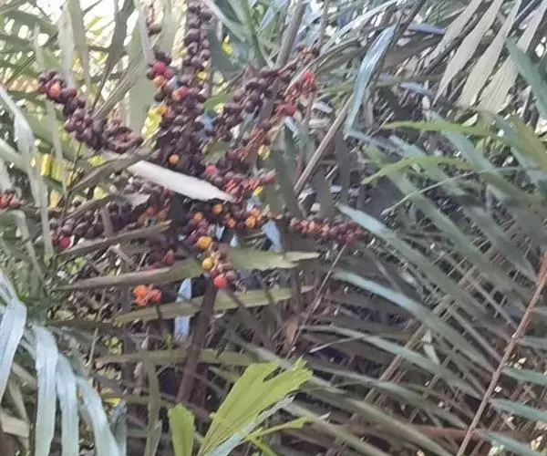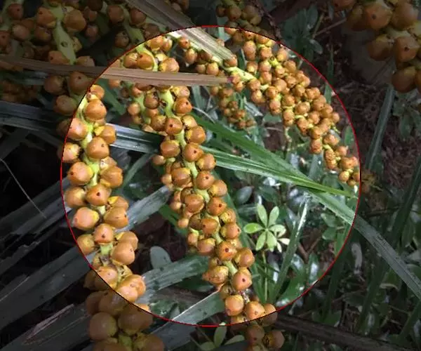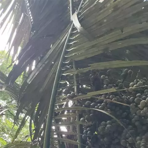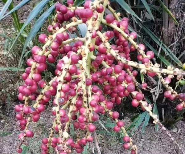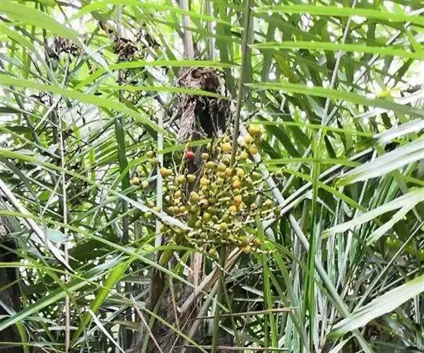 种子采收:鉴定种子是否成熟、能否采收是保证种子发芽的关键。山棕果熟时,果实是紫红色的,剥开果实种子呈黑褐色,胚乳坚硬,表明种子充分成熟,即可采收。