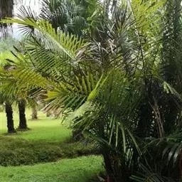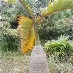 为了方便管理,小苗最好进行假植,山棕出苗后,当年一般只长2-3叶。株型较小,突然拉开株行距种植,既浪费土地又不方便管理。在出苗后的一叶期,按15厘米×15厘米的株、行距进行假植。栽植时,不但要浇足定根水,还要用遮阳网遮阳,盛夏中午前后还需喷1-2次水,以保证幼苗成活。假植期间,在4-10月份浇施2-3次氮、磷、钾复合肥。2年后,植株已长出1-2片裂叶(大叶),这时可稀植培育大苗。