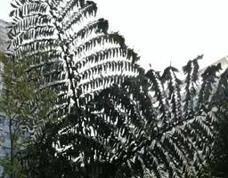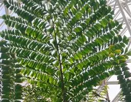 丛生灌木,高2-3米。叶羽状全裂,长2-3米,羽片互生,长30-55厘米或更长,宽2-3厘米,基部的羽片较短而狭,上部的羽片较短而宽,线形,基部变狭,仅一侧有耳垂,顶部收缩,具细齿,中部以上边缘具不规则的啮蚀状齿,顶部的羽片顶端变宽而具啮蚀状齿,上面深绿色,背面灰绿色;叶柄基部的上面具凹槽,背面凸圆,其余部分为近半圆柱形;叶轴三棱形;叶柄及叶轴被黑色鳞秕;叶鞘为黑色的网状纤维。