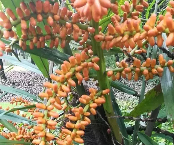 山棕叶羽状、丛生,树型美丽,可用于庭院绿化、园林造景。其雄花芳香,果实颜色鲜艳,挂果期长。因此,也是理想的观花、观果植物。