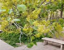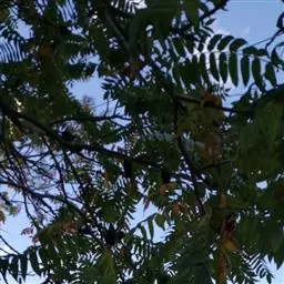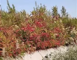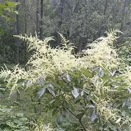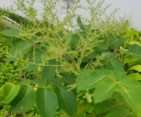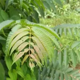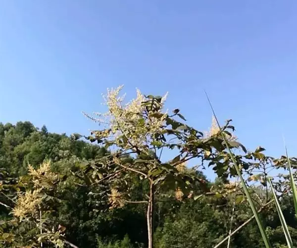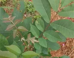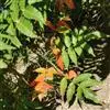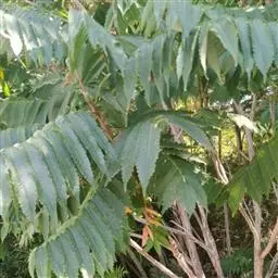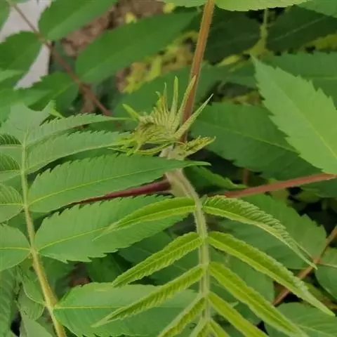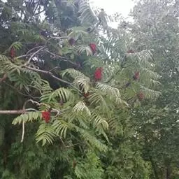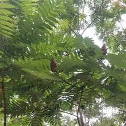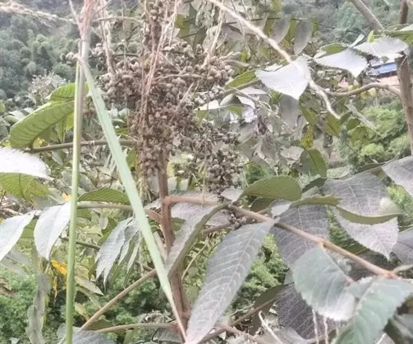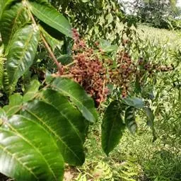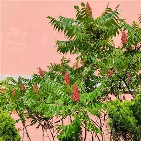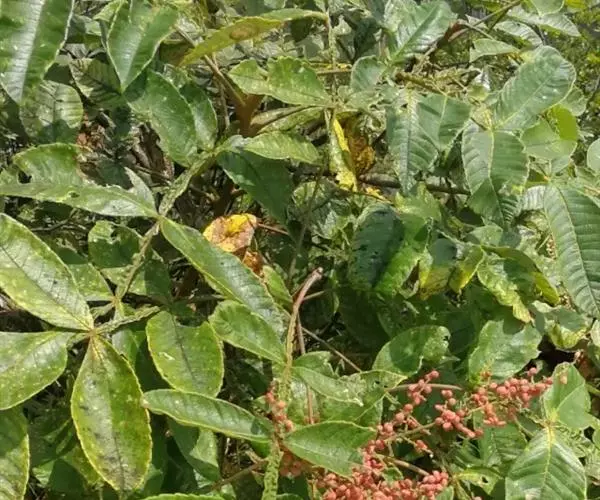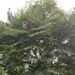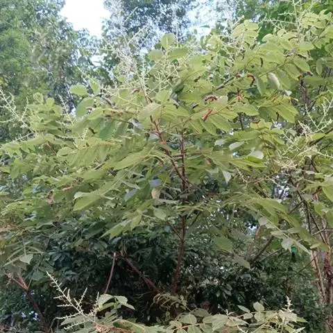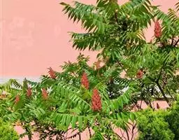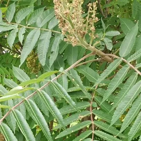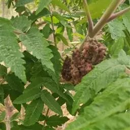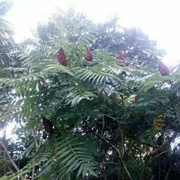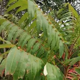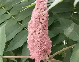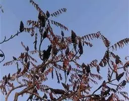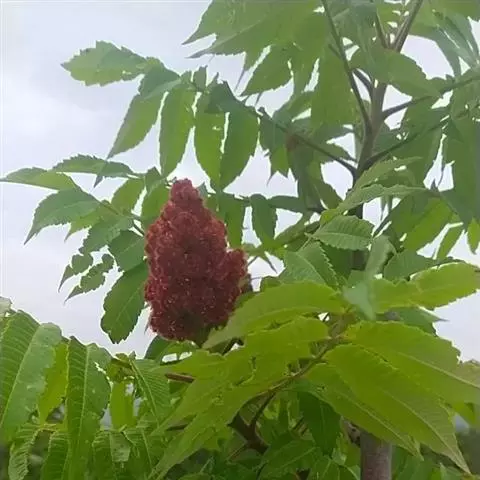 盐麸木(学名:Rhus chinensis Mill.),漆树科盐麸木属落叶小乔木植物。高达10米,小枝棕褐色,叶片多形,基部圆形,叶面暗绿色,叶背粉绿色,无柄。圆锥花序宽大,多分枝,雌花序较短,密柔毛;苞片花白色,花瓣长圆形,开花时外卷;核果球形,成熟时红色。8—9月开花,10月结果。盐麸木可以吸收土壤中的盐分,并将其以盐水的形式分泌出,待水分蒸发,盐分附着于树体上,因此得名。 盐麸木为广布物种,现分布于印度、日本等国。在中国除东北、内蒙古和新疆外,其余省区均有分布。喜光、喜温暖湿润气候,适应性强,耐寒。对土壤要求不严。生于中高海拔的向阳山坡、沟谷等疏林或灌丛中。盐麸木有种子繁殖和压根、扦插方式。《日华子诸家本草》《本草纲目》记载盐麸木可“生津降火,化痰,润肺滋肾,消毒,止痢收汗”。盐麸木鲜嫩茎叶中富含氮、磷酸等,且茎叶柔软多汁易腐烂分解,是一种很好的绿肥。另外,盐麸木的嫩茎叶可作为野生