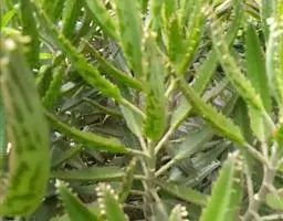 棒叶落地生根是景天科、落地生根属植物。茎直立、粉褐色。叶圆棒形,上表面有沟、粉色,有红褐斑。…