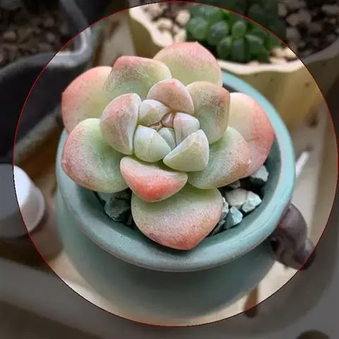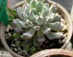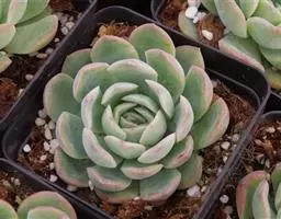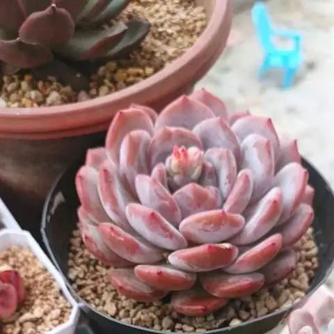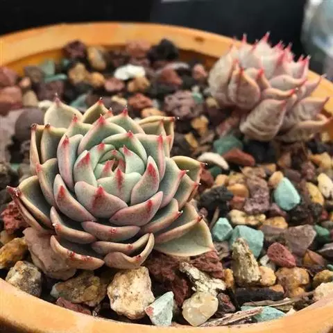 大和锦是景天科拟石莲花属的多肉植物。肉质叶排成紧密的莲座状,广卵形至散三角卵形,背面突起呈龙骨状,…