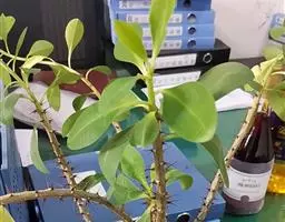 三角榕为常绿乔木或小乔木。叶片近三角形,薄肉质,全缘,长4~6厘米,宽3~5厘米,浓绿色。