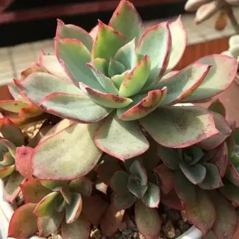女雏是景天科石莲花属的多肉植物。特征是小巧的株形和橙粉色叶缘。极易生侧芽,…