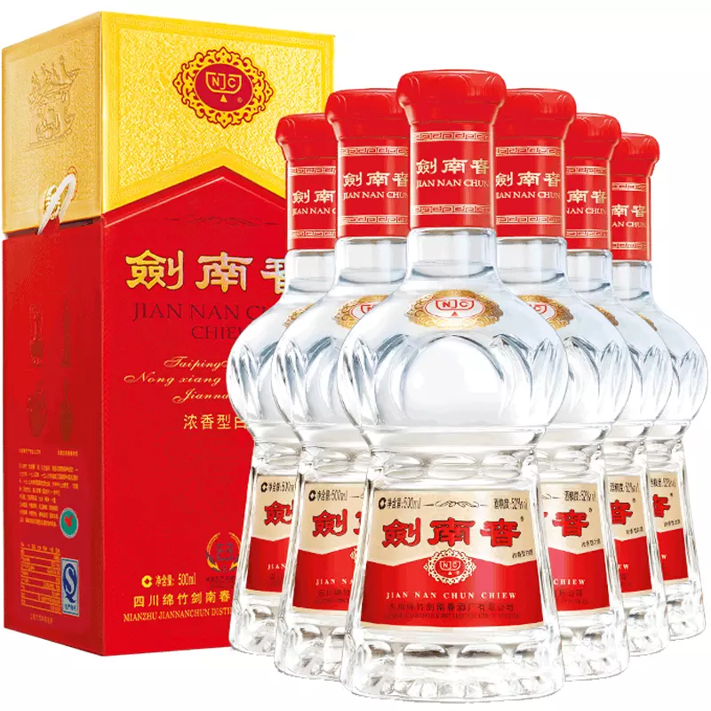 剑南春是中国传统名酒,产于四川省绵竹市,因绵竹在唐代属剑南道,故称“剑南春”。