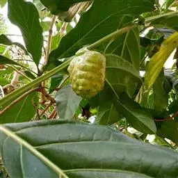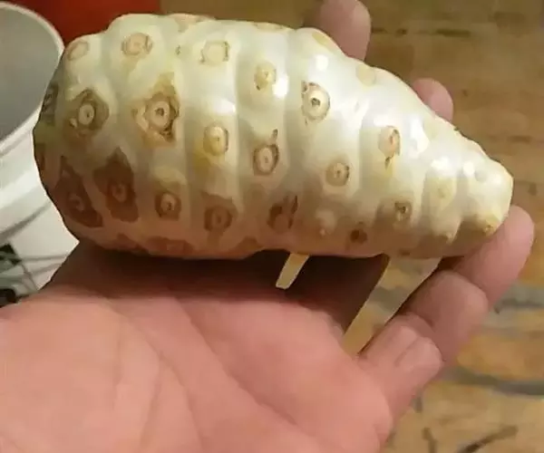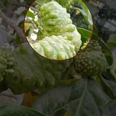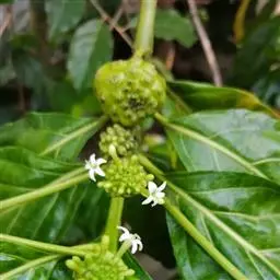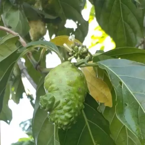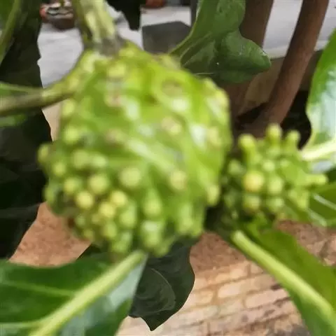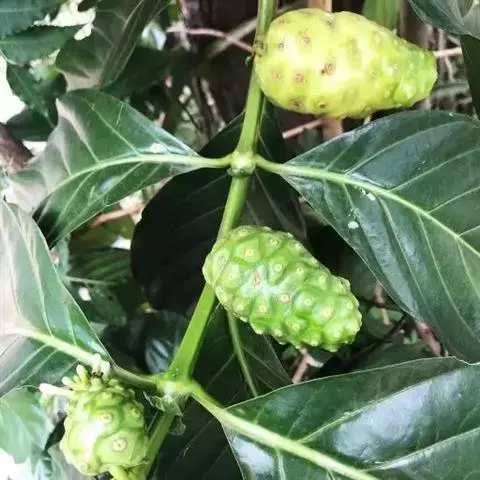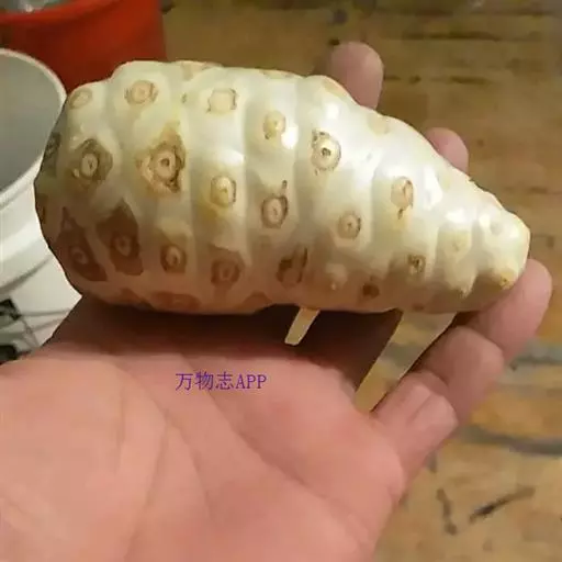 灌木至小乔木, 高1-5米; 茎直, 枝近四棱柱形。叶交互对生, 长圆形、椭圆形或卵圆形,长12-25厘米,两端渐尖或急尖,通常具光泽,无毛,全缘;叶脉两面凸起,中脉上面中央具一凹槽,侧脉每侧6(-5或7)条,下面脉腋密被短束毛;叶柄长5-20毫米;托叶生叶柄间,每侧1枚,宽,上部扩大呈半圆形,全缘,无毛。头状花序每隔一节一个,与叶对生,具长约1-1.5厘米的花序梗;花多数,无梗;萼管彼此间多少粘合,萼檐近截平;花冠白色,漏斗形,长约1.5厘米,喉部密被长柔毛,顶部5裂,裂片卵状披针形,长约6毫米;雄蕊5,罕4或6,着生花冠喉部,花丝长约3毫米,花药内向,上半部露出冠口,线形,背面中部着生,长约3毫米,二室,纵裂;花柱约与冠管等长,由下向上稍扩大,顶二裂,裂片线形,略叉开,子房4室,有时有1-2室不育,每室具胚珠1颗,胚珠略扁,其形状随着生部位不同而各异,通常圆形,长圆形或椭圆形,或其他形,横生,下垂或不下垂。果柄长约2厘米;聚花核果浆果状,卵形,幼时绿色,熟时白色约如初生鸡蛋大,径约2.5厘米,每核果具分核4(-2或3),分核倒卵形,稍内弯,坚纸质,具二室,上侧室大而空,下侧室狭,具1种子;种子小,扁,长圆形,下部有翅;胚直,胚根下位,子叶长圆形;胚乳丰富,质脆。花果期全年。