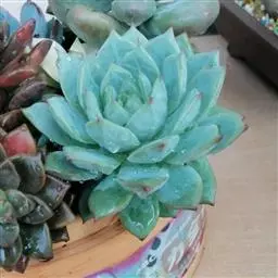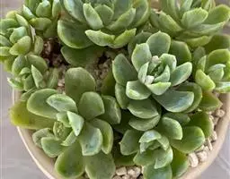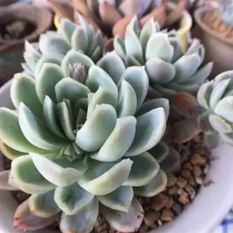 吉娃莲,景天科拟石莲花属,别名:吉娃娃,吉娃莲,植株小型,无茎的莲座叶盘非常紧凑。卵形叶较厚,带小尖,…