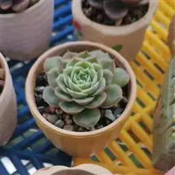 大和锦是景天科拟石莲花属的多肉植物。肉质叶排成紧密的莲座状,广卵形至散三角卵形,背面突起呈龙骨状,…