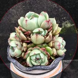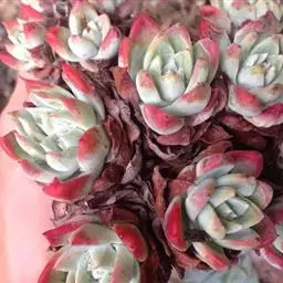 小红衣是景天科、拟石莲花属的一种多肉植物。叶片匙形,扁平细长,叶表具白粉,有明显的半透明边缘,…
