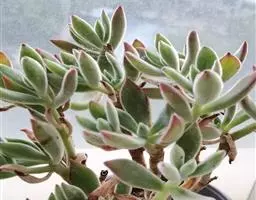 花椿,又称玉梓。景天科,青锁龙属。杂交种,母本为玉椿,父本为苏珊乃。叶片翠绿上覆极短柔毛,…