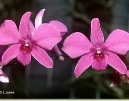 喉红石斛:附生。茎丛生,直立,粗短,近棒状纺锤体。叶2-4枚,生于茎顶。总状花序顶生,花序轴长5-…