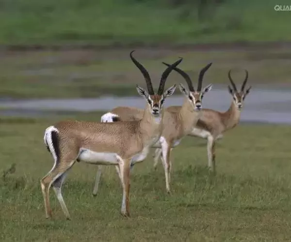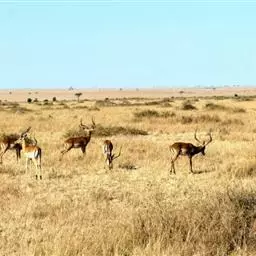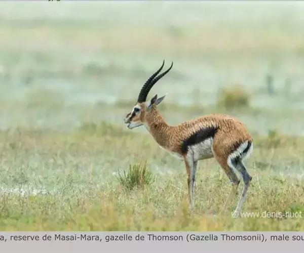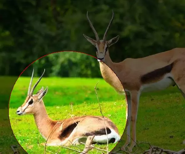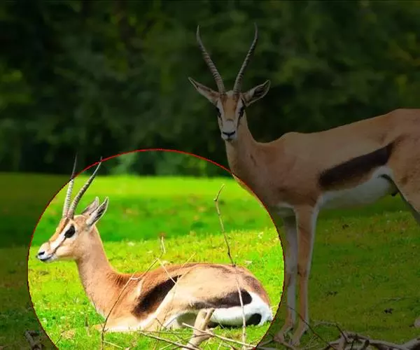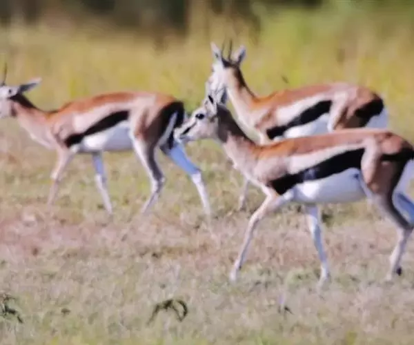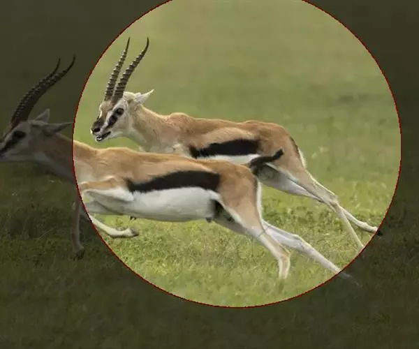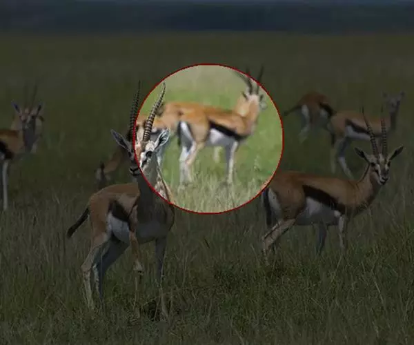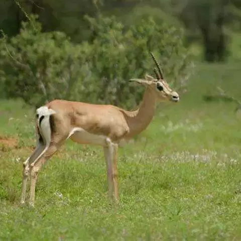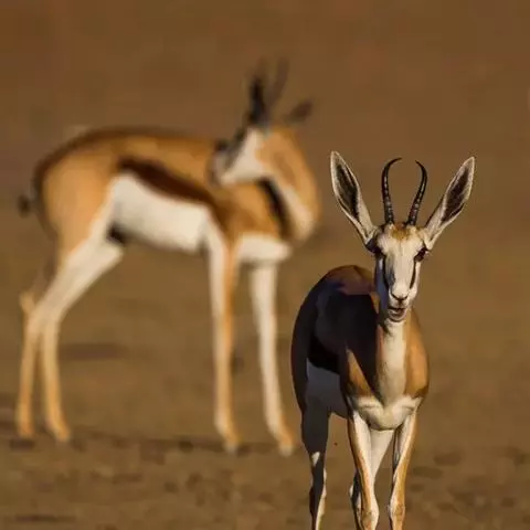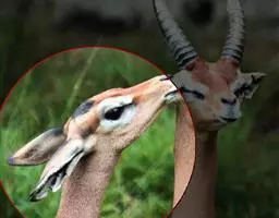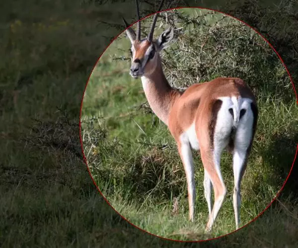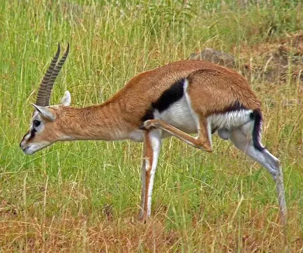 汤普森瞪羚(Gazelle thomsonii)是一个很好的例子,肩高60-80厘米,毛色为棕色和白色,身体两侧有一条黑线。雄性的角又长又弯。当瞪羚受惊吓时,瞪羚先是不紧不慢跑,然后突然跳得很高。这种行为是由阿默兹·扎哈维在研究瞪羚时发现的。