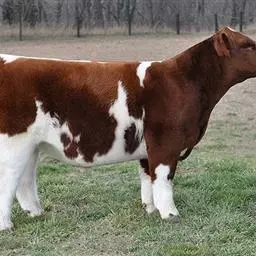西门塔尔牛是偶蹄目牛科牛属哺乳动物。 体躯长,呈圆筒状,肌肉丰满;头较长,面宽,颈长中等,…