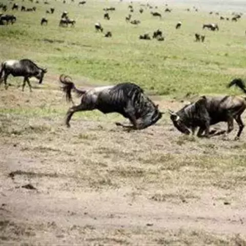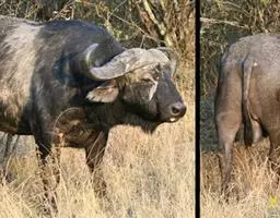 非洲野水牛:共有5个亚种。头体长2.1-3.4米,身高1-1.7米,体重300-900千克。胸膛宽…