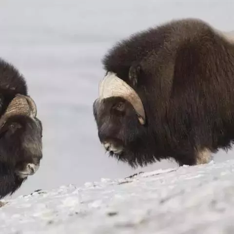 麝牛,是偶蹄目牛科麝牛属哺乳动物。麝牛体型大,但低矮粗壮,头大,吻部宽,眼小;雌雄均具角,四肢短粗,…