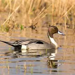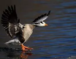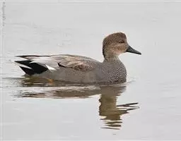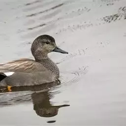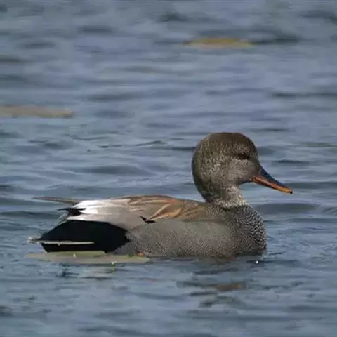 赤膀鸭,是雁形目鸭科鸭属中型游禽。雄鸟嘴黑色,脚橙黄色。头侧及头上部浅白色,满杂以褐色斑点,…