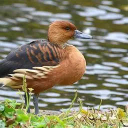 栗树鸭体长37-42厘米,体重400-600克,是中等体型的红褐色鸭。头顶深褐,头及颈皮黄色,…