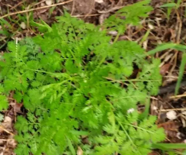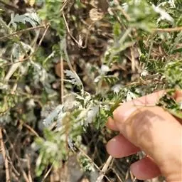 性状鉴别:茎圆柱形,上部多分枝,长30-80cm,直径0.2-0.6cm,表面黄绿色或棕黄色,具纵棱线;质略硬,易折断,断面中部有髓。叶互生,暗绿色或棕绿色,卷缩,碎,完整者展平后为三回羽状深裂,裂片及小裂片矩圆形或长椭圆形,两面被短毛。气香特异,味微苦。以色绿、叶多、香气浓者为佳。