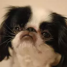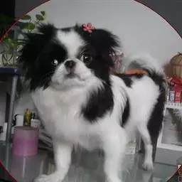 日本狆是极小型犬;被毛长而丰厚,不弯曲;毛色为白色底,带黑色或栗色斑块,…
