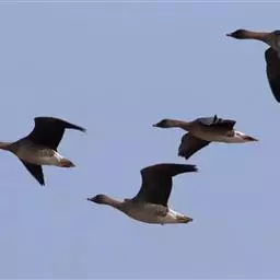 雪雁是鸭科雁属鸟类,雁属中体形大,个体重的鸟类。羽毛洁白,翼角黑色。飞行时双翼拍打用力,振翅频率高。…