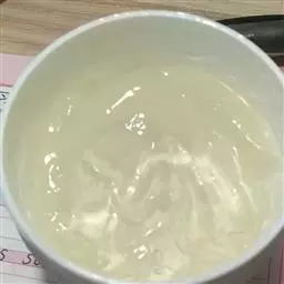 把奶皮下面的牛奶倒出,留少许牛奶在碗内。