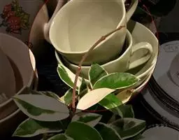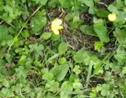 叶圆形或卵形,具不明显的波状缘。上面深绿色,有褐色斑纹,下面红褐色,有黑色小斑点。花黄色,径约10厘米。