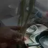 6、将油倒出,留少许在锅内,烧热后下入蒜末煸香。