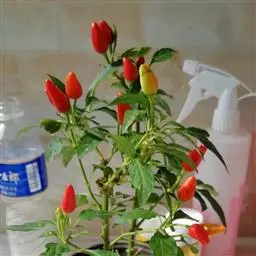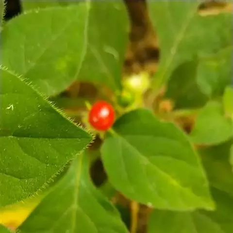 朝天椒茄科辣椒属一年或多年生草本植物;卵形;花通常单只生长于二分叉间,花梗直立,花稍俯垂,…