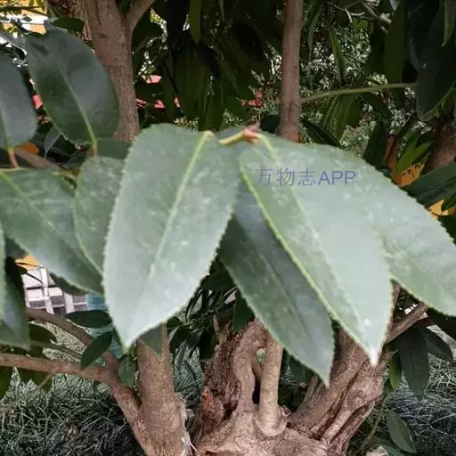 大叶冬青 常绿大乔木,高达20米,胸径60厘米,全体无毛;树皮灰黑色;分枝粗壮,具纵棱及槽,黄褐色或褐色,光滑,具明显隆起、阔三角形或半圆形的叶痕。叶生于1-3年生枝上,叶片厚革质,长圆形或卵状长圆形,长8-19(-28)厘米,宽4.5-7.5 (-9)厘米,先端钝或短渐尖,基部圆形或阔楔形,边缘具疏锯齿,齿尖黑色,叶面深绿色,具光泽,背面淡绿色,中脉在叶面凹陷,在背面隆起,侧脉每边12-17条,在叶面明显,背面不明显;叶柄粗壮,近圆柱形,长1.5-2.5厘米,直径约3毫米,上面微凹,背面具皱纹;托叶极小,宽三角形,急尖。由聚伞花序组成的假圆锥花序生于二年生枝的叶腋内,无总梗;主轴长1-2厘米,基部具宿存的圆形、覆瓦状排列的芽鳞,内面的膜质,较大。