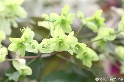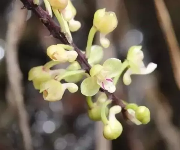 花序与叶对生,比叶长,常分枝,圆锥花序密生许多小花;花苞片向外伸展或稍反折,卵状披针形,长2-5毫米,先端钻状;花梗和子房长6-10毫米;花不甚开放,萼片和花瓣淡黄色或黄绿色,质地较厚;中萼片宽卵形,凹的,长4-5毫米,宽约4毫米,先端钝;侧萼片斜宽卵形,与中萼片等大,先端近锐尖。