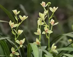 寄树兰(学名:Robiquetia succisa (Lindl.) Seidenf. et Garay):茎坚硬,圆柱形,长达1米,粗5毫米,节间长约2厘米,下部节上具发达而分枝的根。叶二列,长圆形,先端近截头状并且啮蚀状缺刻。花序与叶对生,比叶长,常分枝,圆锥花序密生许多小花;花不甚开放,萼片和花瓣淡黄色或黄绿色,质地较厚;花瓣较小,宽倒卵形,先端钝;唇瓣白色,3裂;侧裂片直立,耳状,长约4毫米,宽2毫米,先端钝并且带紫褐色,边缘稍波状。蒴果长圆柱形,成熟后倒垂。花期6-9月,果期7-11月。