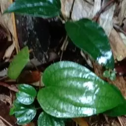 假蒟是胡椒科胡椒属多年生草本植物。小枝近直立,无毛或幼时被极细的粉状短柔毛;叶近膜质,有细腺点,…