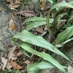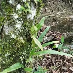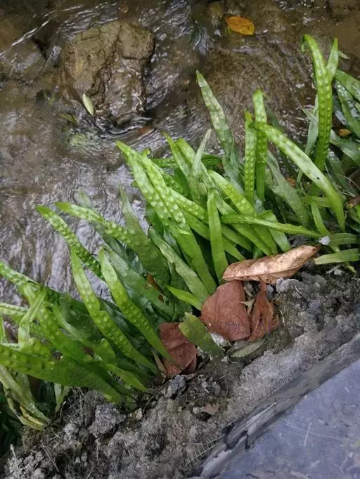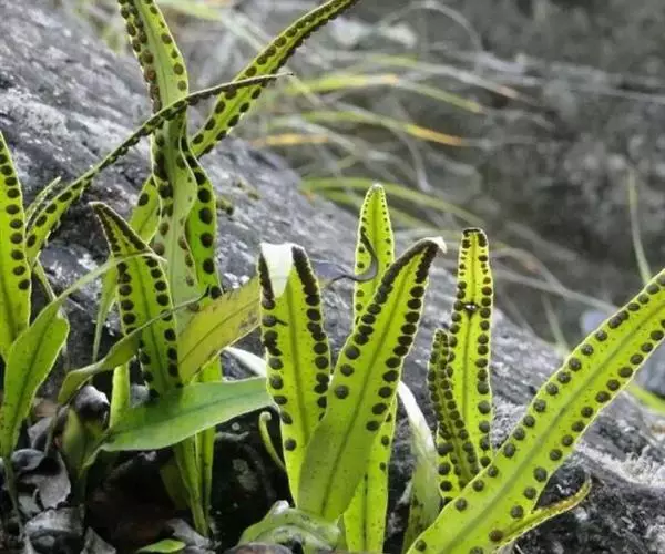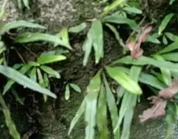 植株高约15-30厘米。根状茎短促横卧,密被卵状披针形鳞片;鳞片深棕色,大部分不透明,仅边缘有1-2行淡棕色透明的细胞。叶簇生或近生;叶柄长1-5厘米,禾秆色;叶片披针形,中部为最宽约1-2厘米,向两端渐变狭,顶端渐尖头,基部渐狭并下延,长 (10) 13-20厘米,干后淡棕色或灰绿色,革质,两面光滑无毛。主脉上下均隆起,小脉不见。孢子囊群圆形,位于主脉与叶缘之间,聚生于叶片上半部,幼时被淡棕色圆形的隔丝覆盖。