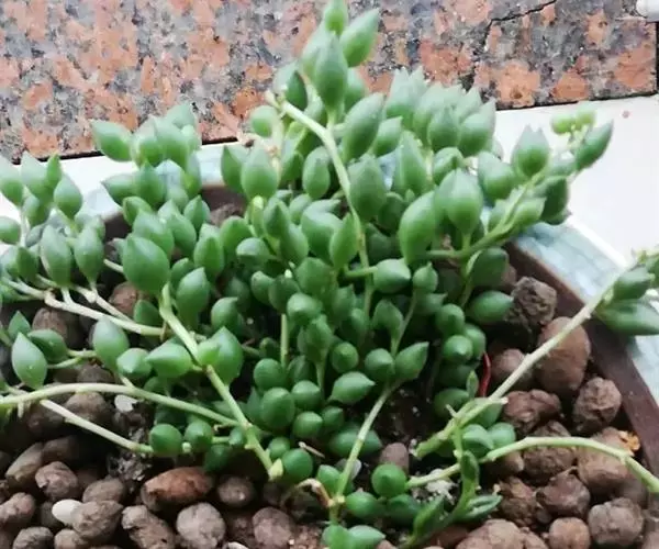 情人泪也叫佛珠吊兰,佛珠吊兰的学名叫翡翠珠,菊科千里光属多年生常绿匍匐生肉质草本植物。佛珠吊兰原产非洲南部,在世界各地广为栽培。其性喜温暖湿润、半阴的环境。