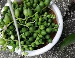情人泪也叫佛珠吊兰,佛珠吊兰的学名叫翡翠珠,菊科千里光属多年生常绿匍匐生肉质草本植物。佛珠吊兰原产…