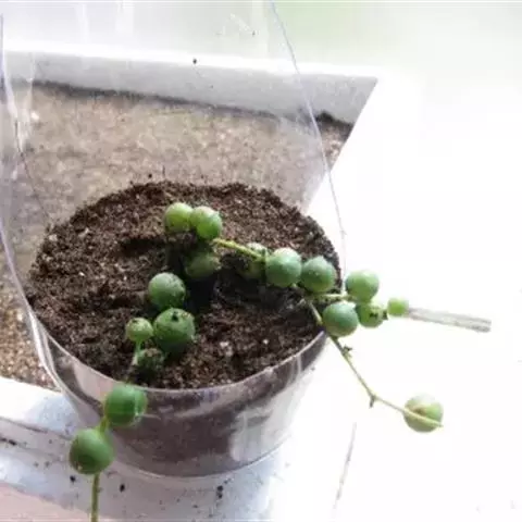 佛珠吊兰采用扦插繁殖。将枝蔓剪成8~10厘米一段,平铺半埋于盆土中,开始时保持50%~60%的湿度,半个月后即可生根成活。成活后要控制浇水量,保持盆土干湿相间的状态,有利于植株生长。