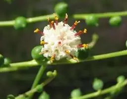 佛珠吊兰的茎纤细,全株披白色皮粉。头状花序,顶生,长3~4厘米,呈弯钩形,花白色至浅褐色。花期:12月至翌年1月。