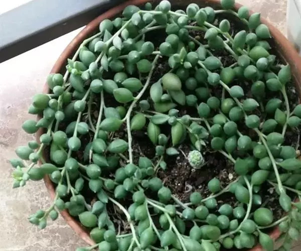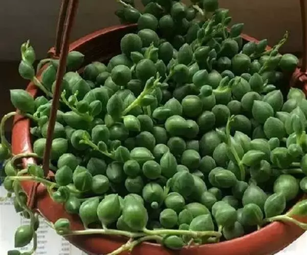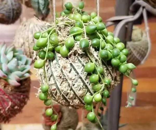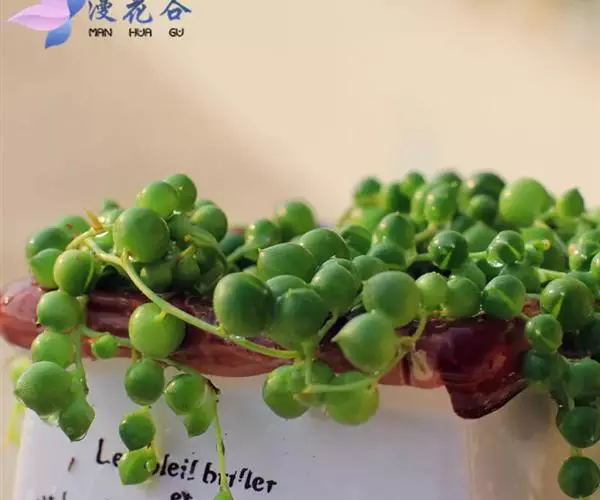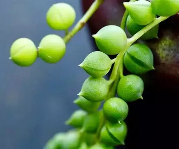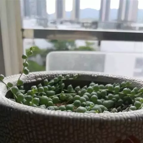 佛珠吊兰用小盆悬吊栽培,极富情趣,一粒粒圆润、肥厚的叶片,似一串串风铃在风中摇曳,是家庭悬吊栽培的理想花卉。