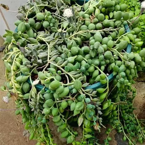 珍珠吊兰因鼓鼓、饱满翠绿的椭圆形小叶子形似珍珠状而得名。又名翡翠珠、 佛珠吊兰、翡翠珠、绿之铃,绿铃。…