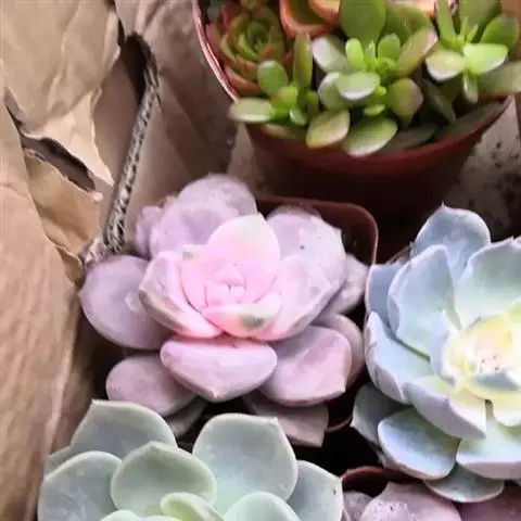 紫珍珠是景天科石莲花属的多年生肉质草本植物。植株中小型;叶片肉质,匙形,呈莲座状紧密排列;叶片粉紫色,…
