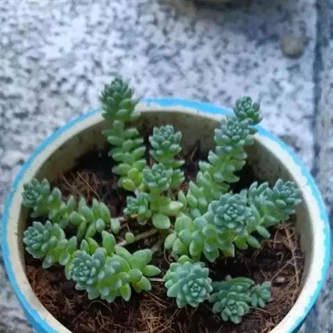 白霜,景天科景天属小型多肉植物,叶子绿色肉质会有白霜覆在表面。