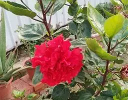 重瓣朱槿是锦葵科、木槿属常绿灌木植物;小枝疏被星状柔毛单叶互生,卵形或卵状披针形,…
