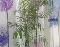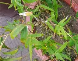 凤尾竹 Raeusch. ex Schult. ’Fernleaf’ R. A. Young)是禾本科,簕竹属孝顺竹的变种。植株较高大,杆高可达6米,竿中空,小枝稍下弯,下部挺直,绿色;竿壁稍薄;节处稍隆起,无毛;叶鞘无毛,纵肋稍隆起,背部具脊;叶耳肾形,边缘具波曲状细长繸毛;叶舌圆拱形,叶片线形,上表面无毛,下表面粉绿而密被短柔毛,小穗含小花,中间小花为两性;外稃两侧稍不对称,长圆状披针形,先端急尖;内稃线形,脊上被短纤毛,花药紫色,子房卵球形,羽毛状。成熟颖果未见。原产中国,华东、华南、西南以至台湾、香港均有栽培。凤尾竹喜温暖、湿润和阳光充足的环境,耐寒。宜土层深厚、肥沃、疏松的微酸性壤土。该种观赏价值较高,宜作庭院丛栽,也可作盆景植物。全草或根入药,味淡、微苦,性寒,有清热利湿、凉血止血、消肿解毒功效,可治痢疾、泄泻等多种病症。凤尾