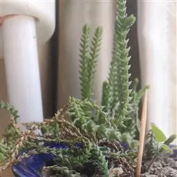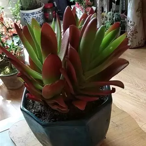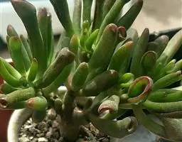 灯美人是景天科的园艺品种,多肉植物。叶片近柱状,丛生,在日照时间长、温差大的环境下会呈现橙粉色。