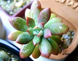 小红衣是景天科、拟石莲花属的一种多肉植物。叶片匙形,扁平细长,叶表具白粉,有明显的半透明边缘,…
