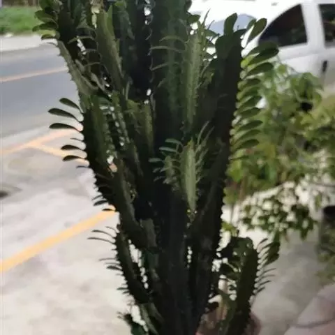霸王鞭,是大戟科大戟属的多年生肉质灌木,全株含白色乳汁;茎直立,茎基部圆柱形,上部4~5纵棱,…