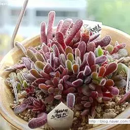 波尼亚对土壤的要求不严,以泥炭土加粗沙保持透水就可以。每年的9月至第二年的6月为植株的生长期(花友的环境不一样,生长期也有长短),若光照不足植株容易徒长,叶与叶之间的上下距离会拉的更长,使得株型松散,茎变的很脆弱,叶片也会拉长,颜色也会变淡。而在阳光充足之处生长的植株,株型矮壮,叶片之间排列会相对紧凑点,波尼亚长的不太慢。 生长期需保持土壤微湿,避免积水。土壤可用煤渣混合泥炭、少量珍珠岩,比例大概6:3:1,土表铺设了河沙。 波尼亚在盆土干燥的情况下能耐零下2℃左右的低温,是室内的温度,非露天。整个冬季基本断水,5度以下就要开始慢慢断水了。当夏季温度超过35℃时,整个植株生长基本停滞。这个时候应减少浇水,防止因盆土过度潮湿引起根部腐烂。并加强通风,适当遮荫,避免烈日曝晒,整个夏季基本这样养护,也给微量的水,不然老叶容易干枯,浇水只在盆的边上,一个月大概2-4次,在晚上7-9点左右给水,这个时候太阳已经下山去了,不会对植物的根部造成影响。栽培中要避免长期雨淋,防止根部受损,枝条变黄腐烂。