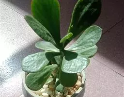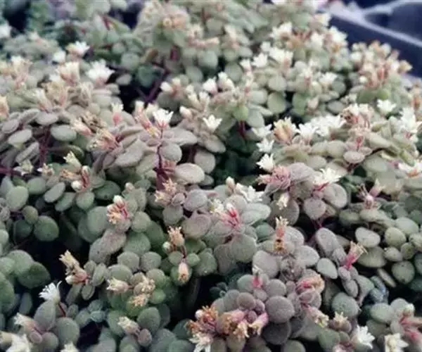 叶片对生,肉质,叶片如银富磷,叶缘边上有均匀的点,在充足的阳光下,叶子会变得肥厚饱满,全叶覆盖细细的绒毛,长得胖嘟嘟、毛茸茸,十分可爱。开花五瓣,花色白色。