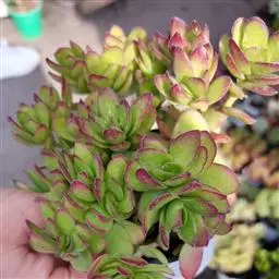 三色花月锦是景天科青锁龙属多肉植物,燕子掌的栽培品种,叶片有红、黄、白斑块,色彩斑斓。花期秋季。